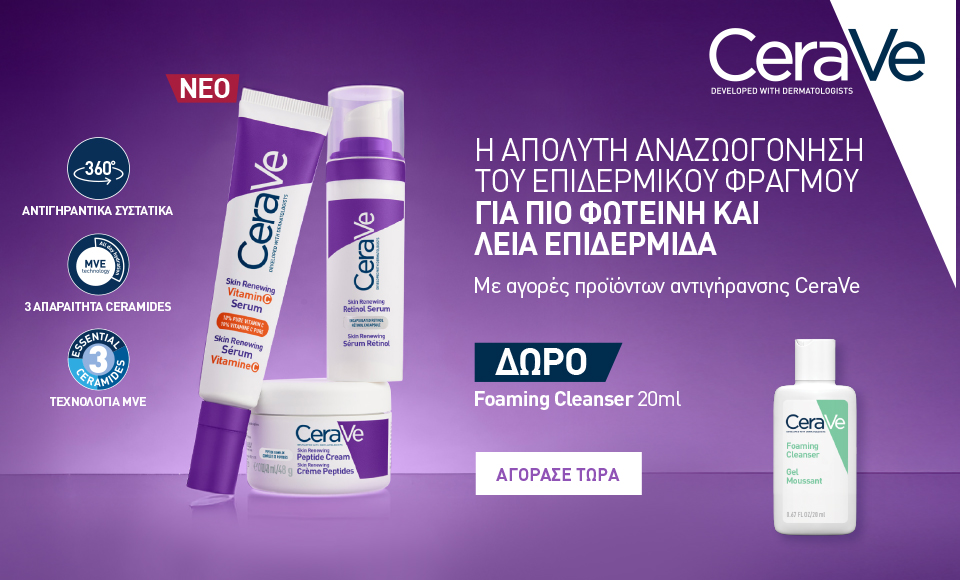 Με αγορές προϊόντων αντιγήρανσης Cerave, ΔΩΡΟ foaming cleanser 20ml!