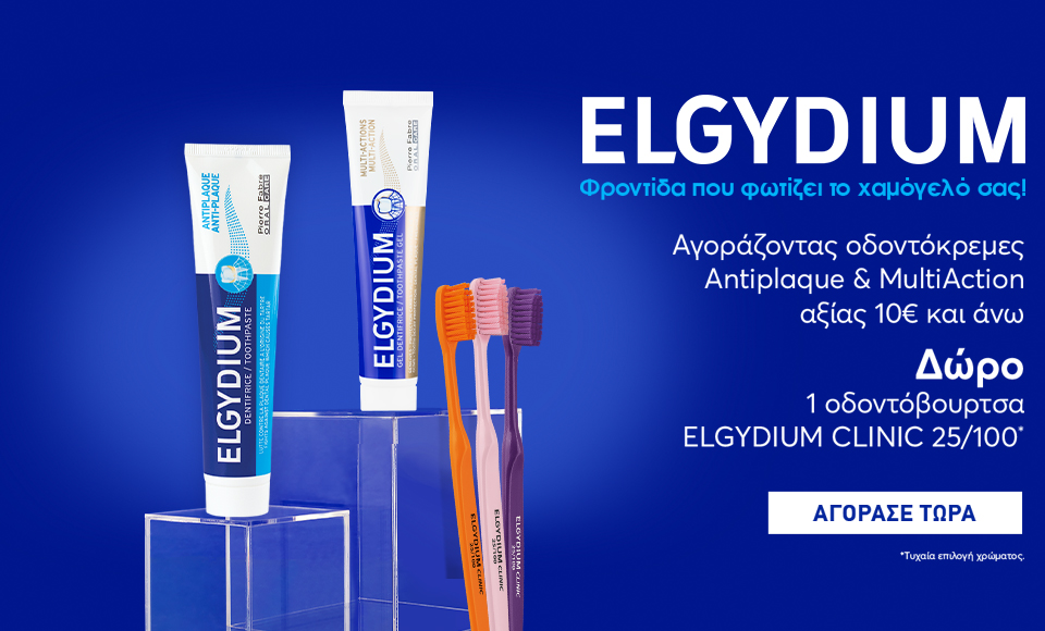Αγοράζοντας οδοντόκρεμες Elgydium Antiplaque & Multi-action αξίας 10€ και άνω, ΔΩΡΟ 1 οδοντόβουρτσα Clinic 25/100!