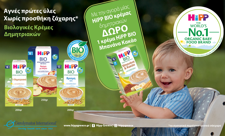 Με την αγορά μιας Bio κρέμας δημητριακών Hipp, ΔΩΡΟ 1 κρέμα Hipp Bio Μπανάνα-Κακάο 200g!